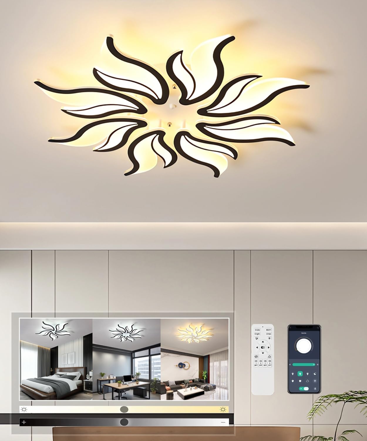 Lampadario LED a forma di fiore dimmerabile con telecomando, 58W 6500K, design moderno per soggiorno o ufficio