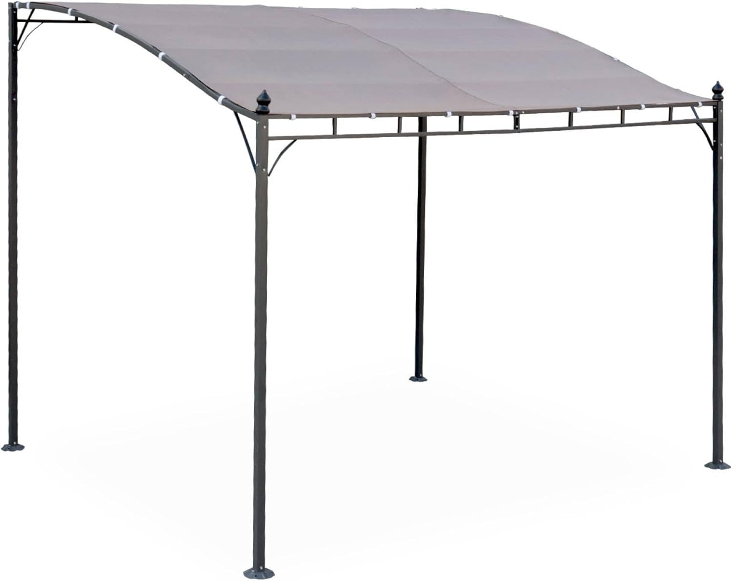 Gazebo da Giardino a Parete in Acciaio con Tetto in Tessuto Beige 3x2,5 m