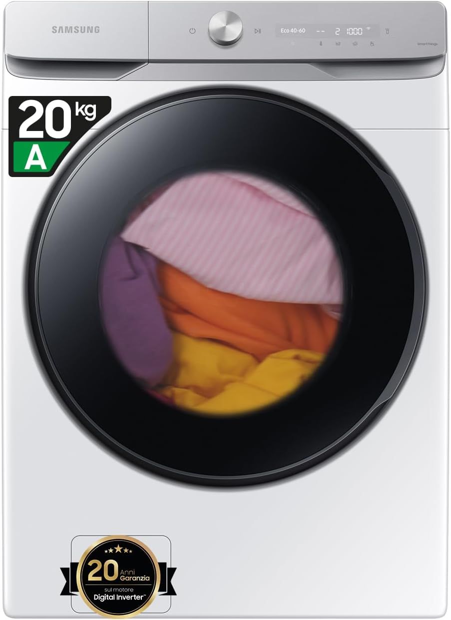 Lavatrice Samsung 20 Kg AI Control, Ecobubble, Vapore Igienico, Wi-Fi, Bianco/Nero