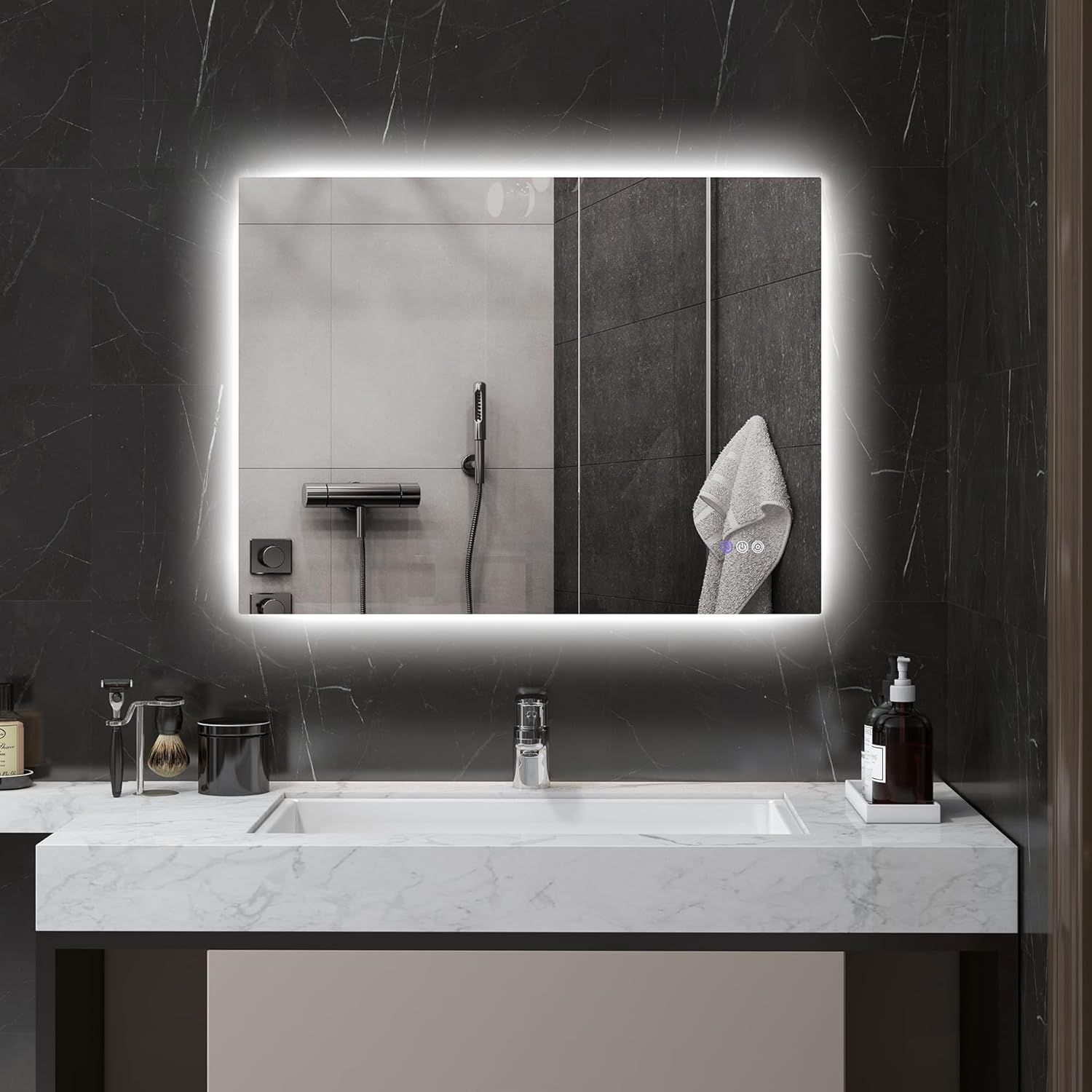 Specchio da Bagno LED 80x60cm Antiappannamento con Temperatura Regolabile