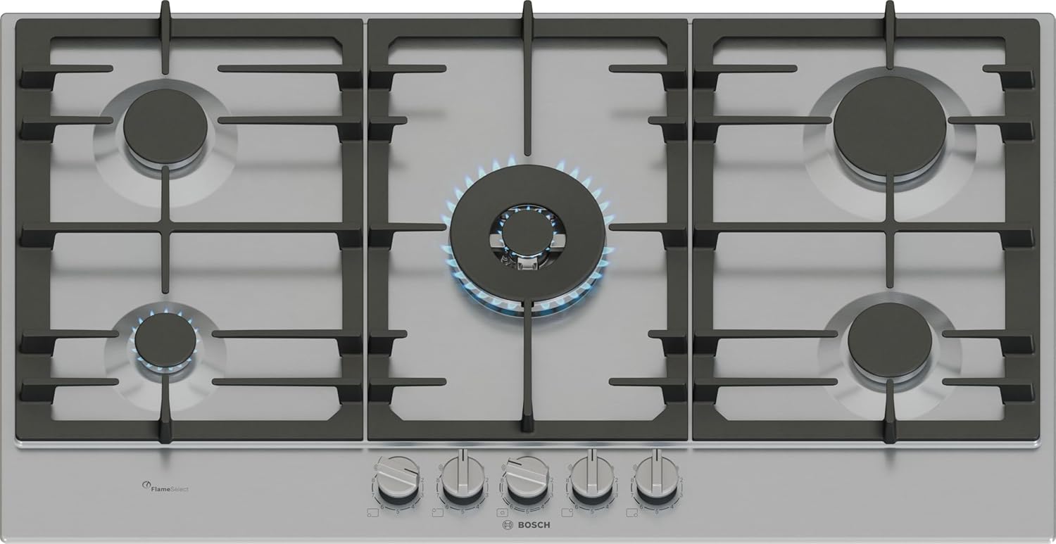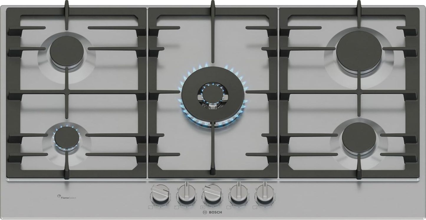 Bosch Serie 6 Piano Cottura a Gas 90 cm, FlameSelect, Wok e Griglie in Ghisa