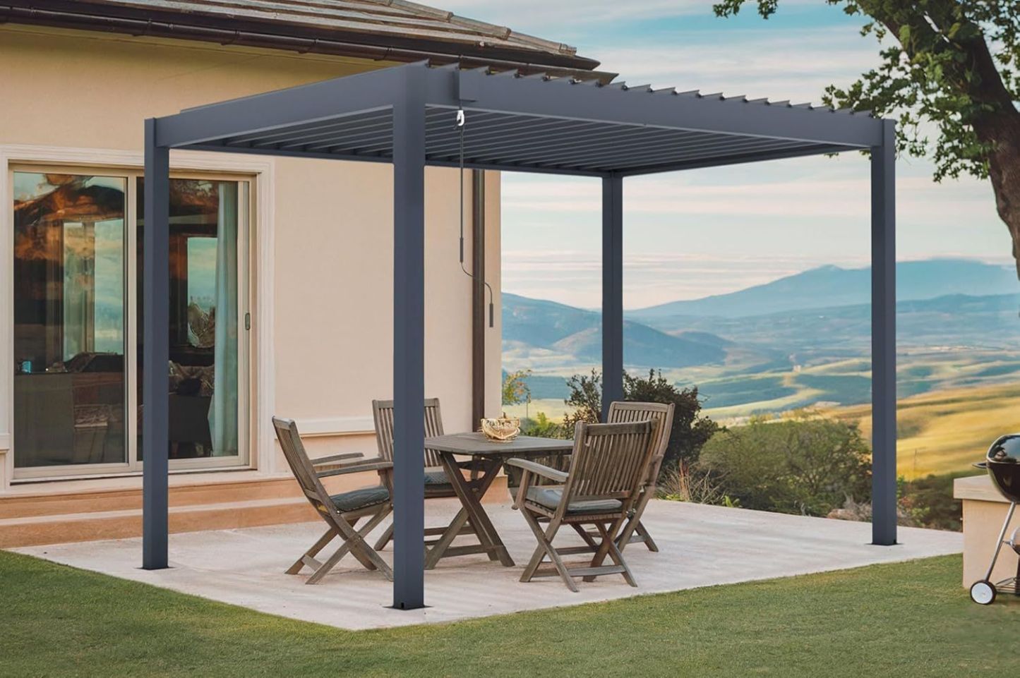 Pergola Bioclimatica Autoportante in Alluminio Grigio 3x2m